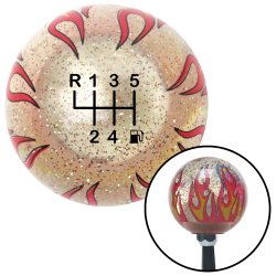 Black 6 Speed Shift Pattern - Gas 20 Clear Flame Metal Flake Shift Knob M16x1.5