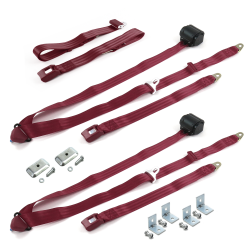 Dodge “B” Truck 1948-1953 Standard 3pt Burgandy Retractable Bench Seat Belt Kit w/ Bracketry - 3 Belts