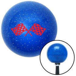Red Dual Racing Flags Blue Metal Flake Shift Knob w/ M16x1.5 Insert Floor Shifter Auto Manual Automatic Custom Universal 3 4 5 6 Speed Transfer Case Brody Suicide Close Ratio Short Throw Cable Ratchet