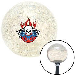 Skull and Pistons 2 Clear Metal Flake Shift Knob w/ M16x1.5 Insert Shifter Auto Manual Automatic Custom Universal 3 4 5 6 Speed Transfer Case Brody Suicide Close Ratio Short Throw Cable Ratchet Hotrod