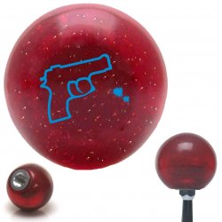 Blue Gun Outline w/ Bullet Holes Red Metal Flake Shift Knob w/ M16x1.5 Insert Shifter Auto Manual Automatic Custom Universal 3 4 5 6 Speed Transfer Case Brody Suicide Close Ratio Short Throw Cable