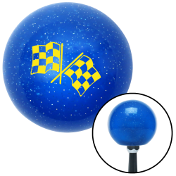 Yellow Checkered Flags Blue Metal Flake Shift Knob w/ M16x1.5 Insert Floor Shifter Auto Manual Automatic Custom Universal 4 5 6 Speed Transfer Case Brody Suicide Close Ratio Short Throw Cable Ratchet