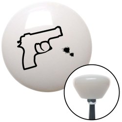 Black Gun Outline w/ Bullet Holes White Retro Shift Knob w/ M16x1.5 Insert Auto Shifter Manual Automatic Custom Universal 3 4 5 6 Speed Transfer Case Brody Suicide Close Ratio Short Throw Cable Hotrod