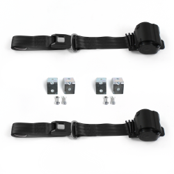 Ford Anglia 1946 - 1968 Standard 2pt Black Retractable Bucket Seat Belt Kit w/ Bracketry - 2 Belts