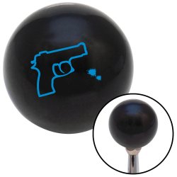 Blue Gun Outline w/ Bullet Holes Black Shift Knob w/ M16x1.5 Insert Floor Shifter Auto Manual Automatic Custom Universal 3 4 5 6 Speed Transfer Case Brody Suicide Close Ratio Short Throw Cable Ratchet
