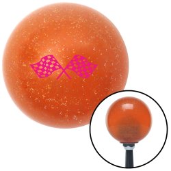 Pink Checkered Racing Flags Orange Metal Flake Shift Knob w/ M16x1.5 Insert Floor Shifter Auto Manual Automatic Custom Universal 3 4 5 6 Speed Transfer Case Brody Suicide Close Ratio Short Throw Cable
