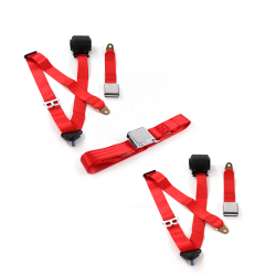 AMC Gremlin 1970 - 1979 Airplane 3pt Red Retractable Bench Seat Belt Kit - 3 Belts