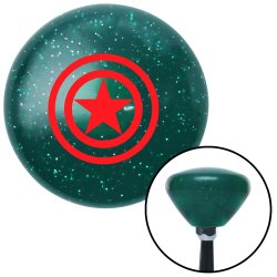 Red Star Inside Circles Green Retro Metal Flake Shift Knob with M16 x 1.5 Insert