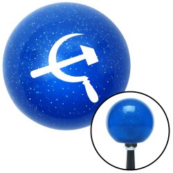 White Hammer & Sickle Blue Metal Flake Shift Knob w/ M16x1.5 Insert Floor Shifter Auto Manual Automatic Custom Universal 3 4 5 6 Speed Transfer Case Brody Suicide Close Ratio Short Throw Cable Ratchet