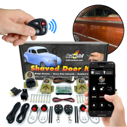 Autoloc 4 Door 8CH Remote Shaved Door Handle Pop Kit w/ Heavy Duty 50lb Solenoids, Mounting Brackets, Hardware, Interior Push Buttons, Stainless Steel Cables & 40 Amp Relays for Car Truck Hot Rod SUV